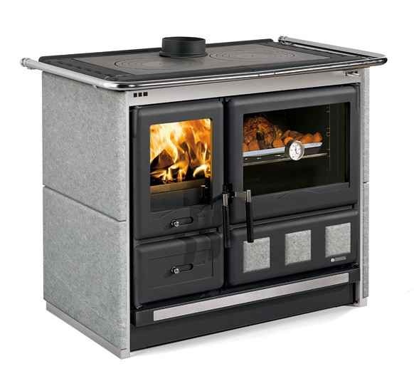 -Compartimento de cinzas removível -Forro interior da lareira em ferro fundido -Chapa e aros em ferro fundido polido -Portas e aro em ferro fundido esmaltado -Ar primário e secundário reguláveis -Sistema de pós-combustão (emissões muito baixas) -Gaveta removível para lenha -Forno de aço esmaltado de porcelana de 78L -Grelha cromada -Vidro cerâmico -Porta da lareira em ferro fundido com vidro duplo -Saída para fumos superior e posterior -Classe Energética A+