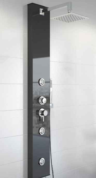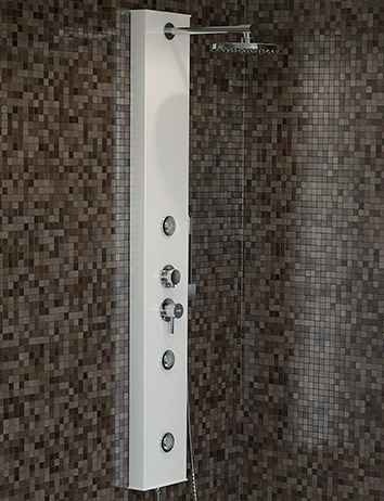 Colunas FLEX. Conforto, versatilidade e funcionalidade não têm que ser mutuamente exclusivos. Com as nossas colunas poderá ter tudo isto e mais. Práticas por excelência, ajustam-se facilmente a espaços reduzidos, transformando qualquer casa de banho num autêntico oásis de bem-estar. Escolha a sua coluna de hidromassagem ou duche SANITANA e atribua ao seu espaço de banho uma identidade atual e contemporânea. Colunas hidromassagem FLEX: Chuveiro superior de grandes dimensões; 3 Injetores orientáveis de tripla função; Misturadora monocomando; Chuveiro de mão minimal incluído.