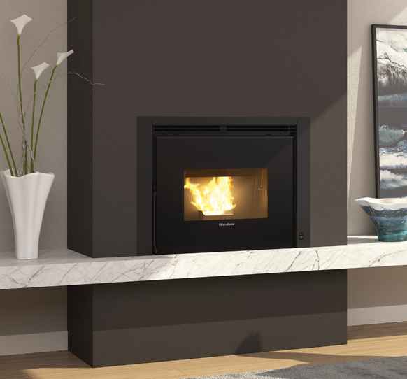 -Porta e braseiro em ferro fundido - Compartimento de cinzas extraível -Ventilação ambiente com saída frontal, com motor independente e função de conforto -Sensor de nível de pellets -Módulo de emergência - Ampla visão do fogo -Saída para descarga de fumos: superior -Telecomando incluído, com controlo de rádio e função de termostato -Classe energética A+