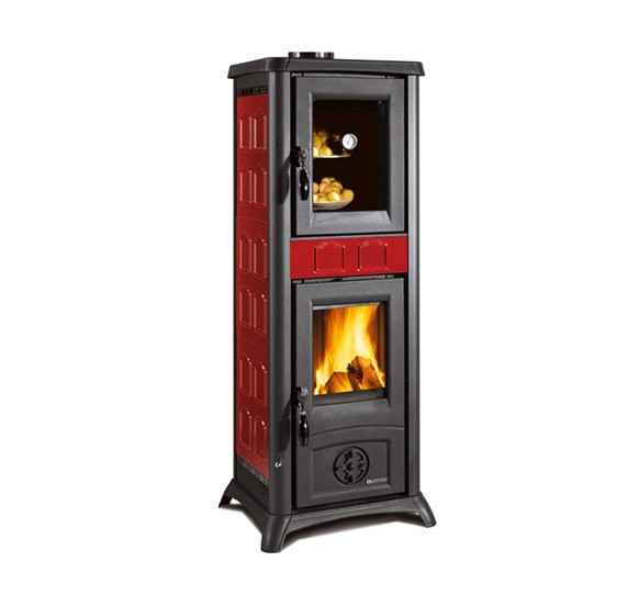 -Compartimento de cinzas removível -Revestimento interior da lareira em ferro fundido -Portas, base e moldura em ferro fundido esmaltado - Ar primário e secundário ajustáveis -Sistema de pós-combustão (emissões muito baixas) -Forno de aço esmaltado de porcelana de 19 l -Vidro cerâmico -Tabuleiro do forno esmaltado -Classe Energética A+