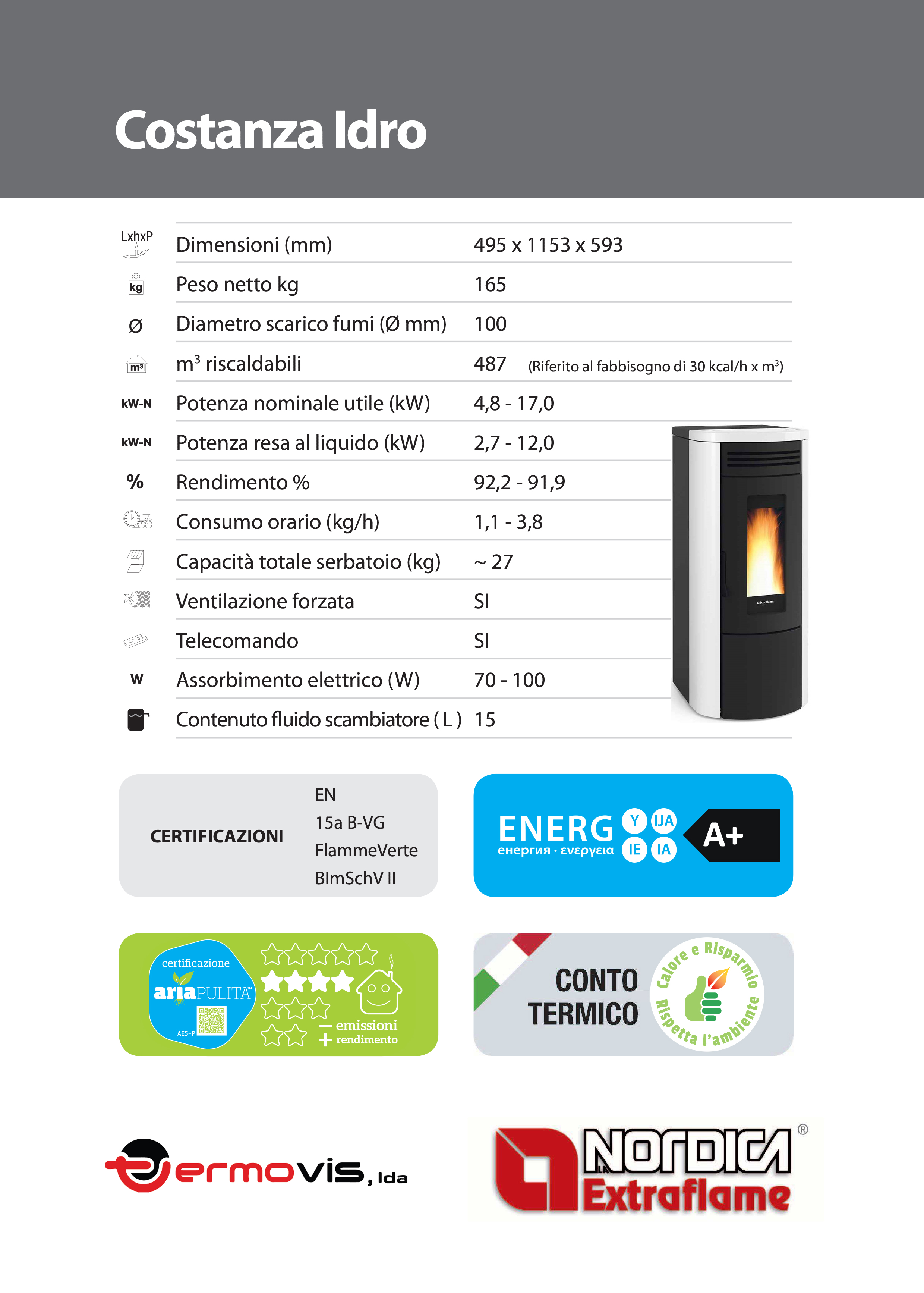 | Salamandra Pellets Costanza Idro 17,0KW - Bordeaux |