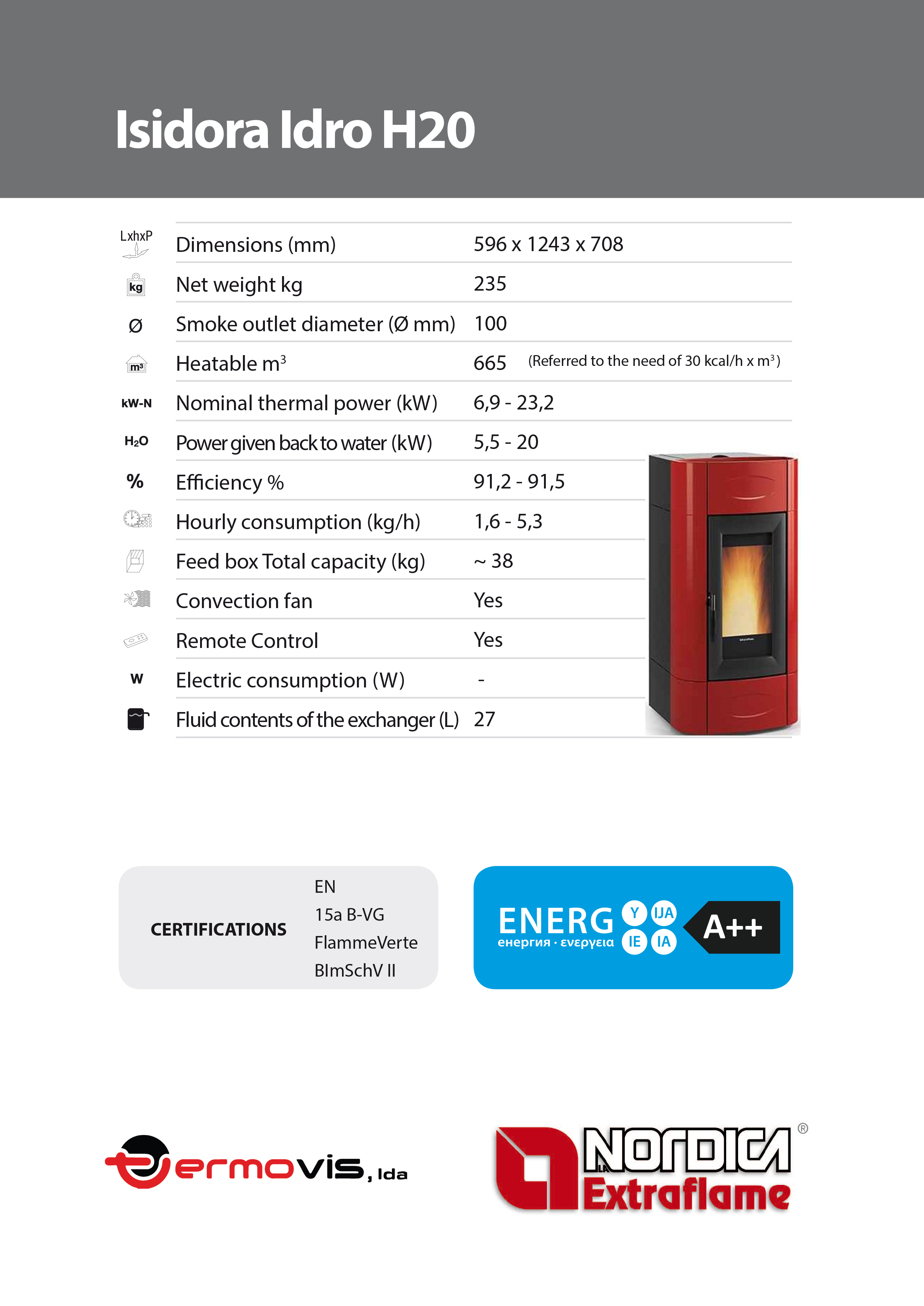 Salamandra Pellets Isidora Idro H20 23,2KW - Bordeaux