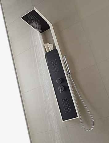 O ritmo das formas. O ritmo das formas geométricas que se intersetam fundem-se em sintonia com o contraste entre o negro e branco, originando uma peça com um cunho artístico avant-garde. BEAT: a simbiose única entre vanguardismo e minimalismo. Coluna de duche BEAT: Chuveiro superior de grande dimensões; Cascata de água; 2 injetores XL; Misturadora monocomando; Chuveiro de mão lateral.